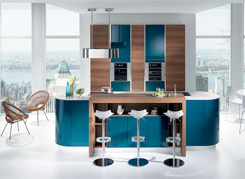Une cuisine ouverte ultra fonctionnelle bleu canard