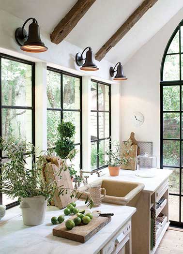 Une verrière traditionnelle dans une cuisine de campagne esprit loft