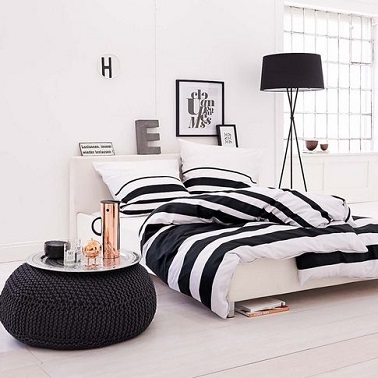 Un duo de couleurs noir et blanc plein d’élégance et de finesse pour une chambre parentale tendance.
