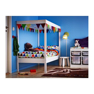 Ce lit cabane Ikea blanc délimite un espace personnel et intime à tout petit prix. Il est parfait pour une chambre partagée avec le grand frère ou la petite sœur