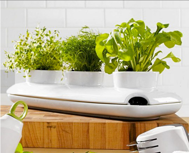 Avoir des plantes aromatiques sous la main à longueur d’année dans la cuisine relève souvent de l’exploit dans un appartement ! Avec la jardinière Trio Herb Pot, inutile de lancer un SOS aux voisins pour obtenir le précieux brin de thym ou les feuilles de basilic qu’il nous faut de toute urgence obtenir pour aromatiser notre plat préféré. cette jardinière avec pots intégrés est munie d’un système de réserve d’eau qui garantit aux plantes aromatiques une humidité constante.
