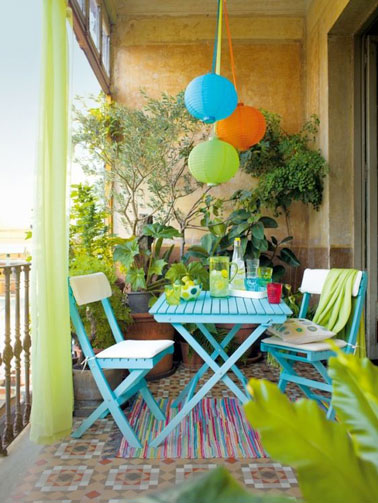 On mise sur du mobilier de jardin de couleurs vives pour donner du peps à la déco de son balcon !