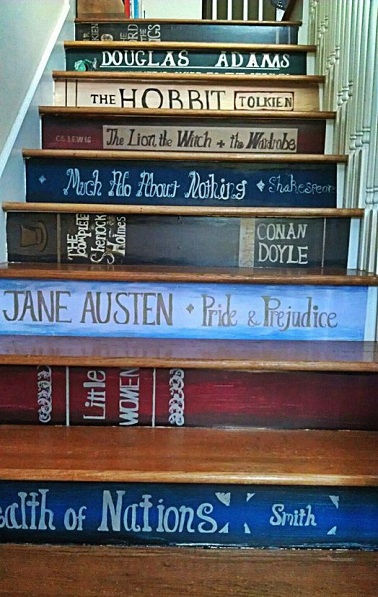 Une idée déco escalier s’inspirant d’une bibliothèque, on ne peut faire plus original ! Les contre-marches de cet escalier en bois peintes à la main reprennent les tranches des livres divers et variés. De quoi donner l’impression d’une bibliothèque géante dans votre intérieur. Alors avis aux créatifs agiles avec le pinceau, cet escalier déco est fait pour vous !