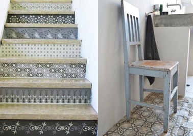 Sur des escaliers en béton, coller des carreaux de ciment donne un style ancien très chic. ©DesignerMag