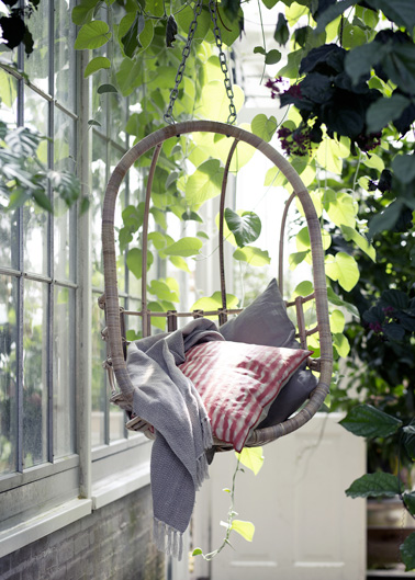 Grand gagnant de la déco tendance pour nos extérieurs cette année, de la déco, un fauteuil suspendu à crocher sur une branche d’arbre sur la terrasse ou dans le jardin pour jouer à cache-cache avec le soleil à l’heure de la sieste ou de pose lecture. Un fauteuil en rotin, des coussins, un plaid d’une tendre couleur pastel et l’été se coule douce ! Broste Copenhagen