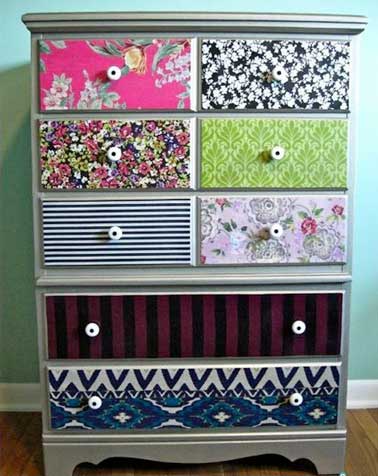 Relooking choc des fonds de tiroirs avec des bouts de papier peint