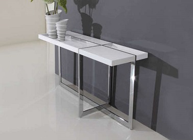 Rien de tel qu’une petite console moderne pour mettre en valeur l’entrée vers le salon ! Ce petit meuble d’appoint est doté d’un plateau blanc laqué et d’un pied design en acier chromé le rendant très stable et chic. Les deux matières se marient d’ailleurs à merveille et donnent un look branché sur un mur en isolé dans le salon ou à toute l’entrée. De plus, cette console tendance propose deux espaces de rangement sur le plateau pour y entreposer clés et autres objets du quotidien. En résumé, un design épuré et fonctionnel dans l’entrée, on dit oui ! Console Lekly. Prix : 249 euros.