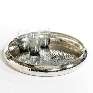 Coupelle accessoire à placer sur la table basse du salon en métal délicatement martelé, de grande taille : diamètre 50 cm. Couleur : Aluminium. Idéal pour parfaire la déco du salon. 41.40€ au lieu de 69.99€ (-40%)