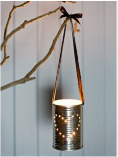 Un lampion pour Noël réalisé avec une boite métallique, un cordon en cuir et une bougie chauffe-platUn lampion à accrocher à l’extérieur pour accueillir les invités ou la famille le soir de Noël. Sur une boîte de conserve métallique percez de petits trous à la mèche spéciale fer ou à l’aide d’une vrille. Pour fixer le cordon de suspension percez 2 trous en vis-à-vis. Au fond de la boite, placez une bougie chauffe-plat et le tour est joué. Source : Project-Wedding.