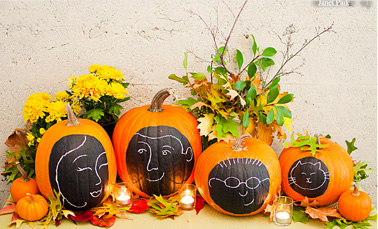 La peinture à tableau séche, donnez libre cours à votre humour pour croquer le portrait des membres de la famille sur la citrouille !
