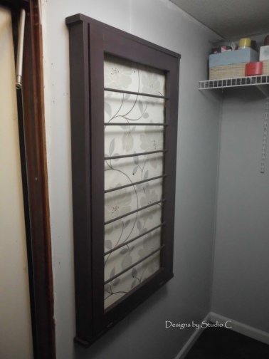 Le panneau de l’étendoir est tapissé pour ajouter une touche déco dans la buanderie. vous pouvez aussi le peindre ou le vernir.