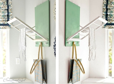 Cet étendoir peut être fixé sur un mur de la buanderie, ou n’importe où dans la maison, ou encore sur un balcon. Il prend très peu de place et se plie après utilisation. Pour le réaliser, rendez-vous dans votre magasin de bricolage préféré pour acheter des tasseaux et baguettes en bois !
