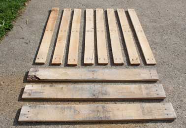 Sélectionnez une palette bois de bonne qualité car même si les palettes usagées se démontent plus facilement certaines traverses sont abimées et ne sont pas récupérables. Plus la palette sera en bon état, plus vous pourrez récupérer de bois pour votre meuble. Une palette entière correspond grosso modo à 12 m de longueur de bois.