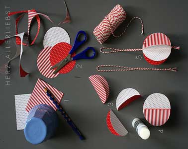 Les boules de Noël, du rouge et blanc, symboles de la déco Noël par excellence. Autre tendance, les décorations Noël faites maison. Dans cet esprit, voici un DIY déco Noël pour fabriquer des boules en rouge et blanche avec du carton léger pour décorer le sapin ou la table de Noël.