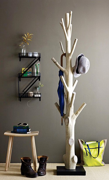 Dans la continuité de la tendance du sapin de Noël en bois flotté ou des étagères, la déco récup s’inspire du bois pour fabriquer des accessoires déco à l’allure naturelle : Détournez une branche d’arbre et réalisez un porte manteaux hyper original pour votre hall d’entrée, afin de ranger vos chapeaux, votre sac à main et autres manteaux de toute la famille.