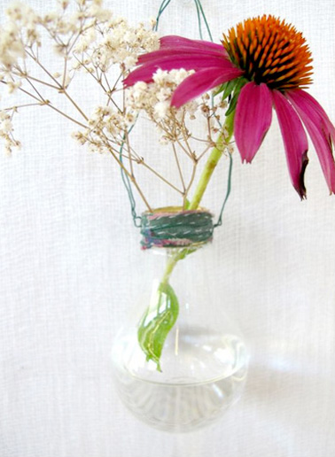 Tel un mur végétal, un DIY déco astucieux pour faire des vases suspendus pas cher et super fun avec des ampoules de récup pour une jolie déco fleurie et originale dans la maison à l’arrivée du printemps. Un bricolage facile à faire en famille pour fleurir son intérieur des fleurs du jardin ou du marché.