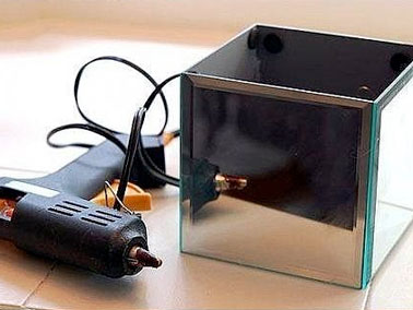 Cinq miroirs sont collés entre eux à l'aide d'un pistolet à colle ou d'une colle prise rapide pour former un carré. L'ensemble est maintenu quelque instant à l'aide d'un élastique
