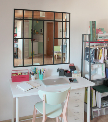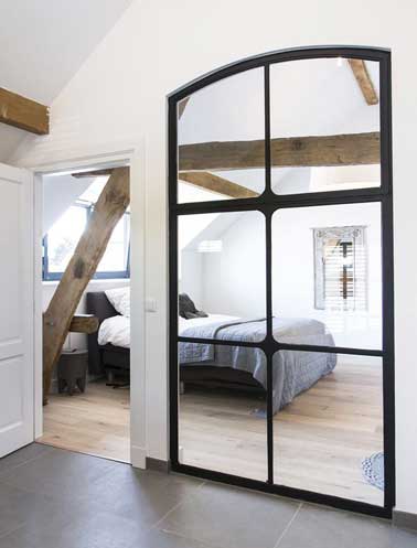 Voilà une verrière intérieure hyper originale qui donne de la profondeur à la pièce grâces aux miroirs ! Une bonne idée facile à réaliser pour les petits espaces et un rendu top.