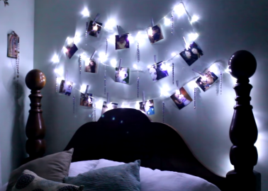 Marre de voir vos belles photos de souvenirs dans des boites ou des albums, sortez-les du tiroir et utilisez-les pour étoffer cette guirlande lumineuse. Fabriquez vous-même votre propre tête de lit, vos souvenirs au dessus de vos têtes, vous ne pourrez faire que de beaux rêves.