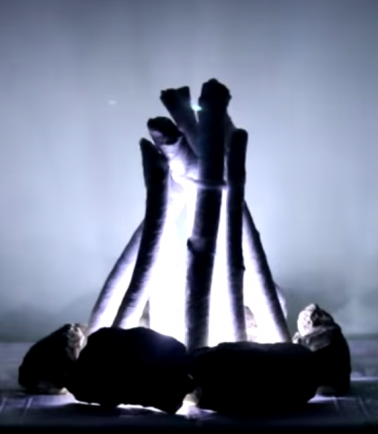 Une guirlande lumineuse peut être utilisée pour créer un effet feu de camp dans le salon, sans rien brûler…