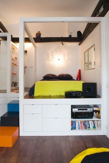 Le lit avec rangement, un vrai gain de place pour la déco d’une chambre. En version lit bateau, estrade, lit en palette ou à baldaquin, ranger ses affaires devient simple. Avec ces DIY déco agrandissez votre chambre grâce à un nouveau lit en hauteur avec un max de rangements !