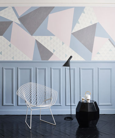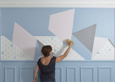 Voici une idée de déco murale facile à réaliser qui vous confirmera que vous pouvez faire aussi bien qu’un pro de la déco ! En utilisant quelques lés de papier peint intissé décorés de motifs géométriques de couleurs et de la colle à papier peint, il suffit d’imaginer sa propre composition graphique de déco en laissant libre court à votre imagination. Vous obtiendrez alors une déco géométrique sur un ou plusieurs murs à la pointe de la tendance. Une bonne idée pour donner un coup de frais aux murs du salon, apporter une touche ludique à la déco d’une chambre enfant, ou tout simplement créer votre propre papier peint avant de le poser.