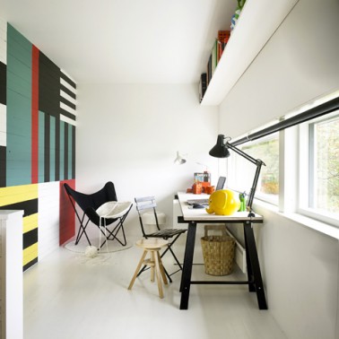 Les lames du lambris offrent un support idéale pour une décoration murale moderne puisqu’elles sont une bonne base pour faire des rayures, des carrés ou rectangles de plusieurs couleurs sans avoir à se faire suer avec les prises de mesures. Avant de commencer à peindre directement sur le lambris, l’idéal est de faire une composition des couleurs et des formes sur un papier en prenant soin de respecter l’échelle.