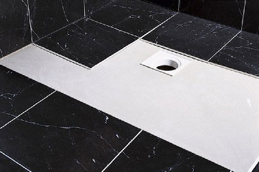 Receveur de douche italienne » Evolution » et « Allégria » en mousse de polystyrène extrudée enduite d’un mortier spécial et armée d’un tissu de verre imperméable. Pratique : Les pentes d’écoulement vers le vidage sont déjà préformées. Possibilité de découper le receveur douche pour l’adapter aux dimensions voulues pour la douche. Epaisseur du receveur : 4 cm. Modèle « Evolution » 120 x 120 cm. Modèle « Allégria » 140 x 90 cm. Prix : 265 € chez Lapeyre.