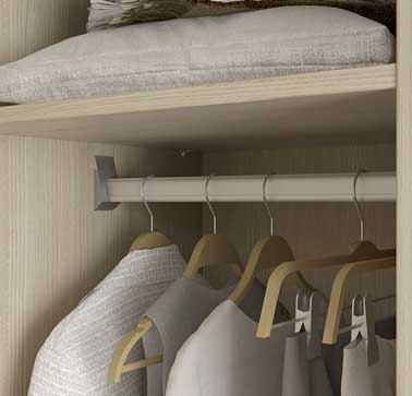 Les barres de penderie ovoïdes disposent d’un système anti-glisse grâce à une couche de silicone qui les recouvre. Ainsi, fini les porte-manteaux qui glissent sans qu’on leur demande et le frottement plus ou moins bruyant des métaux. Un petit plus pratique pour conserver un rangement au carré dans son dressing.