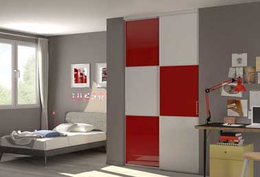 Un dressing qui participe à la déco de la chambre avec une porte coulissante composée de deux vantaux rouges et blancs avec profil et montant blanc brillant assortis. Un design joyeux et coloré qui illumine la déco de chambre ado. Le plus : la glisse silencieuse des portes avec amortisseurs et anti-déraillement de série. Porte de placard coulissante « Trio » décors vermillon brillant & blanc alpin brillant, à partir de 520€