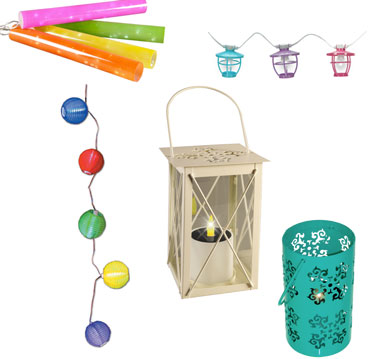des petits luminaires indispensables pour l'été dans le jardin, lampion,à poser ou crocher, guirlandes lumineuses de couleursLes petits éclairages extérieurs indispensables à placer autour de la piscine ou de la table de jardin pour créer des zones lumineuses de couleurs vives. Lanterne cylindrique petit modèle en métal – H 17 x D 10 cm – coloris fuchsia ou bleu. Prix : 13,50 € . Guirlande tempête lanternes tricolore – L 4 m – câble blanc – coloris fuchsia, turquoise et lilas – usage intérieur & extérieur – prix : 47,75 €. Lanterne carrée en métal – H 21 x L 14,5 cm – coloris blanc – usage extérieur – prix : 18 €. Guirlande 4tubes colorés – L 1,5 m x H 40 cm  coloris jaune, orange, vert et rose, connectable une fois. Prix : 45,35 € Guirlande 10 lampions ronds multicolores – L 1,25 m – câble argent transparent. Prix : 12,50 €. chez Blachère.
