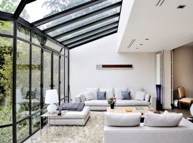 Une véranda style jardin d’hiver en extension de salon