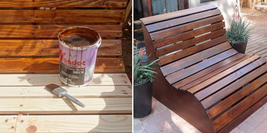 Dans ce DIY Déco, le banc de jardin a été verni dans une teinte teck. Bien sûr, le bois peut prendre un autre look avec un coup de peinture pour être en harmonie avec les couleurs du salon de jardin. Vernis ou peinture, compter deux couches pour une protection du bois maximale. Après séchage, il ne reste plus qu’à installer ce beau banc de jardin en bonne place pour s’y asseoir aussi souvent que possible !