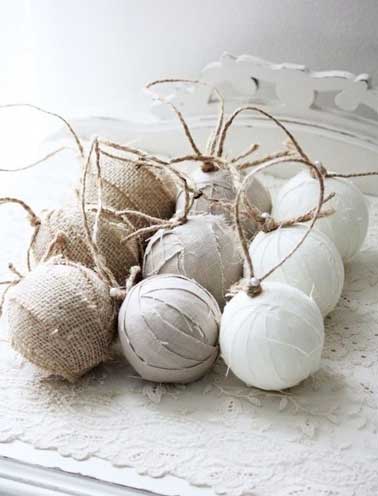 Les boules de Noël de l’année dernière vous paraissent ringardes ? Pas de panique, donnez-leur une seconde vie en les cutomisant et en les décorant avec des tissus, bandelettes, chutes de tissus en lin ou en coton, selon vos goûts et vos couleurs du moment, une déco 100% récup, personnalisée et adaptée à vos envies !