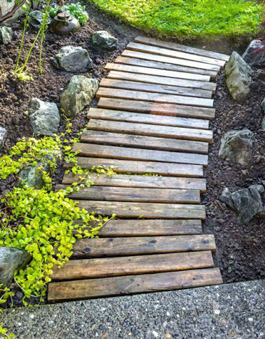 Autre façon d’aménager une allée de jardin avec du bois de palette