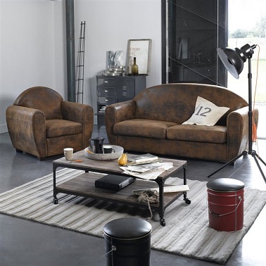 La déco industrielle et urbaine revient en force dans nos intérieurs et amène avec elle le retour du célèbre fauteuil club. En cuir vieilli, ce fauteuil a un effet déco très masculin. Il apporte du caractère et un style bien appuyé à tout une pièce et ça on adore ! Fauteuil club, microfibre effet vieilli, Winconsin. Prix : 321,75 euros.