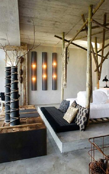 Source d’inspiration sans limite, bois flottés et vieilles planches deviennent lit à baldaquin, plateau de table basse, décor mural pour une déco de chambre originale. Le sommier lui aussi est fabriqué avec des traverses en bois de récup plus larges que le matelas parce qu’elles aussi veulent participer à la décoration de la chambre.