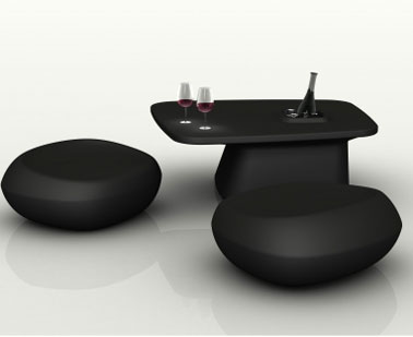 Pouf de jardin forme galet et table basse assortie couleur noir disponible aussi en rouge