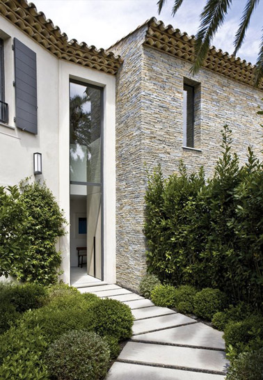Pour mener à la porte d’entrée on a opté pour une allée de jardin composée de pas japonais entourés de verdure et de cyprès afin de crée un chemin accueillant ! Une déco charmante et naturelle qui fera son effet à coup sûr !