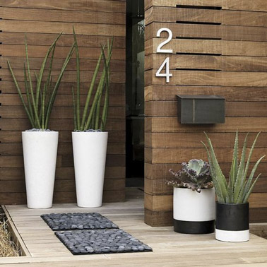 Déco zen devant la porte d’entrée de la maison