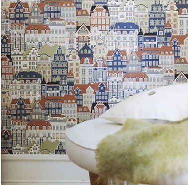 Un papier peint tel une toile naïve inspirée de l’architecture citadine à poser sur un pan de mur pour un effet panoramique et pourquoi pas sur une partie du mur puis entouré d’un cadre bois comme on le ferait pour un vrai tableau. Papier peint à raccord Métropolis : 89 € chez Au fil des couleurs.com