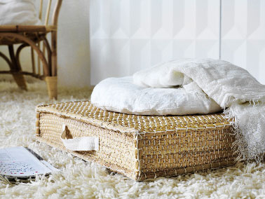 Installez-vous sur ces coussins de sol en jacinthe d’eau (15 euros) qui créent la convivialité. Trop de monde dans le salon ? Obligé de s’asseoir par terre ? Posés sur un tapis blanc ou de couleur claire à poil long ou court, le coussin de sol est un must-have.