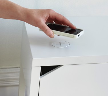 Innovation technologique qui permet de recharger smartphones et tablettes en posant l’objet directement sur le meuble connecté.