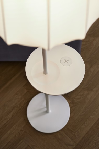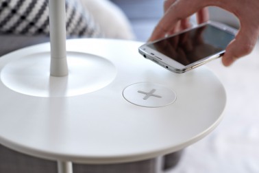 Lampe d’appoint, meuble ou bien socle, le dispositif de recharge pourra aussi bien s’installer dans la maison ou au bureau pour rester connectés avec ses appareils technologiques. Toujours en restant dans l’optique de cacher les fils encombrants et disgracieux qui souvent viennent polluer l’espace, la marque suédoise proposera à la vente en parallèle des meubles Home Smart, un kit qui permettra à titre d’exemple de percer un trou dans une table ou bureau afin d’y insérer son chargeur et d’installer la fameuse petite galette pour qu’aucun fil ne dépasse.