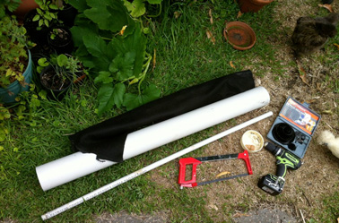 Maintenant, coupez avec la scie le petit tuyaux qui servira à l’arrosage des fraises . N’oubliez pas de faire en sorte que le tube d’arrosage fasse entre 8 et 10 cm de plus que le gros tube. Faites de multiples petits trous dans ce petit tuyau à l’aide d’une scie classique. Prenez garde à ne pas trop faire de trous sur la partie haute de votre tube de façon à ce que l’eau puisse atteindre le bas du tube de sorte qu’il y ait une homogénéité dans l’arrosage.