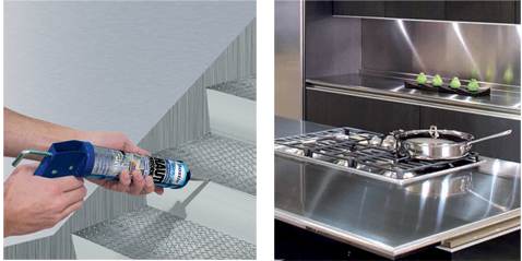 Le métal, l’inox investissent toutes les pièces de la maison. Dans la cuisine, la salle de bain, le salon, la véranda, du sol au plafond le métal décore notre intérieur. Très tendance déco, le métal est la vraie vedette dans la cuisine, pour l’évier, le plan de travail, la crédence. C’est un matériau que l’on aime pour la variété de ses effets, métal brossé ou chromé, aspect mat ou brillant, le métal est le caméléon de la décoration. Jusqu’à maintenant, la couleur du joint d’étanchéité posait un problème esthétique lors de la fixation d’un décor métal. Alors découvrez le premier joint d’étanchéité métal pour une déco top raffinée.