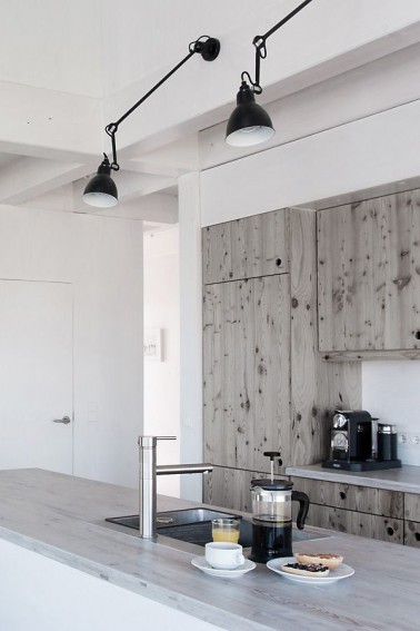 Des lignes pures, des meubles design, une cuisine avec îlot central à la blancheur angélique qui se fait chaleureuse avec l’aide du bois qui sait prendre sa place. Le quatuor parfait pour une déco scandinave réussie. Preuve en est avec cette cuisine scandinave mélangeant harmonieusement tous les codes du style nordique. Le mur en briques et les poutres apparentes au plafond donnent à la pièce la base blanche incontournable à toute cuisine scandinave. Pour un peu plus de caractère, des accessoires noirs comme l’éclairage suspension et les tabourets viennent par touches apporter un contraste chic et tendance à la cuisine. Et pour une déco encore plus marquée, le bois s’invite au centre de la cuisine pour un îlot très nature ! Source : style-files.com