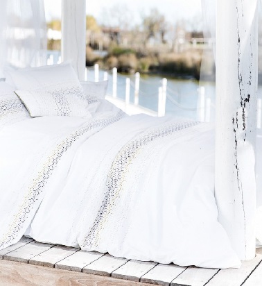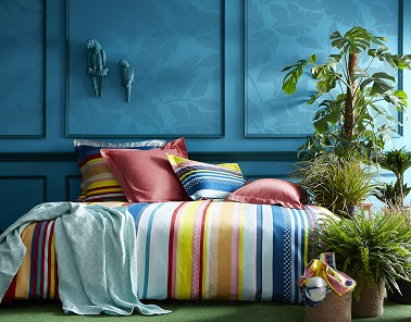 Profiter d’un exotisme avec cette parure de lit en satin de toutes les couleurs. Ses rayures se révèle être un véritable accessoire pour mettre une déco de chambre à l’heure estivale ! Housse de couette à partir de 67,50€, Drap plat à partir de 53,50€, Taie d’oreiller 19,50 € Linge de lit Alegria Essix
