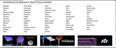 Catalogue meubles, luminaires et accessoires déco parmi les plus grandes marques : Habitat, Ligne Roset, Fly, Ikéa, Opus en Ville, Alinéa, Fatboy, Maison du Monde, Jardin chic, Esprit Home….