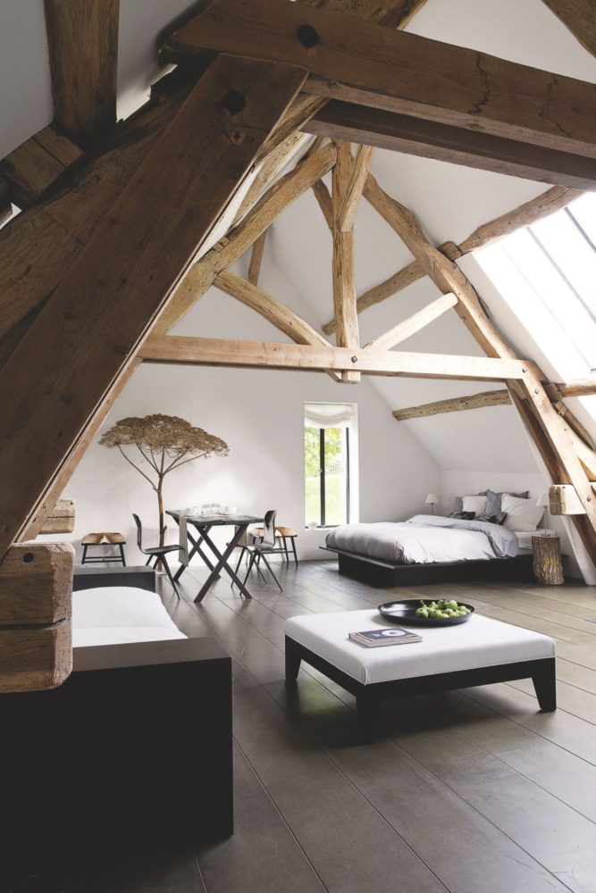 Intérieur d’une maison à poteaux et poutres